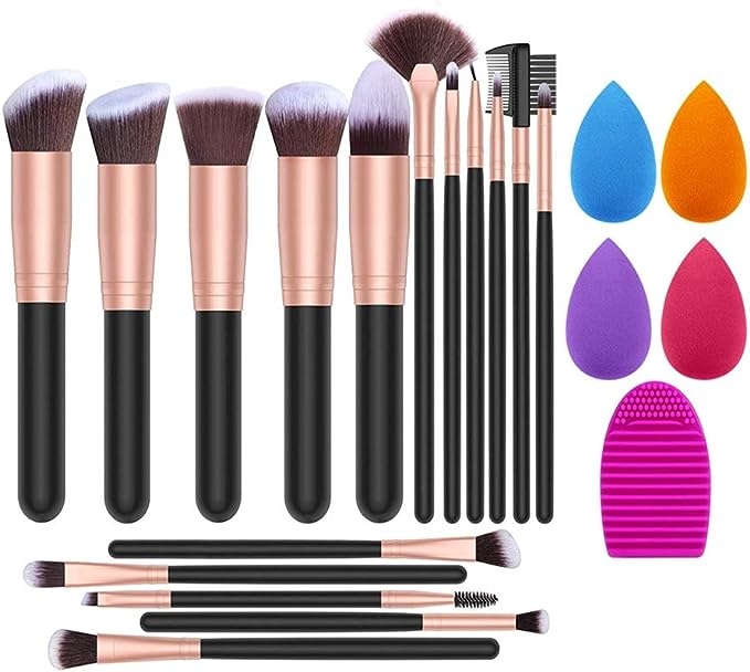 Makeup Brush Set, 16 Makeup Brushes & 4 Blender Sponges & 1 Brush Cleaner Premium Synthetic Foundation Powder Kabuki Blush