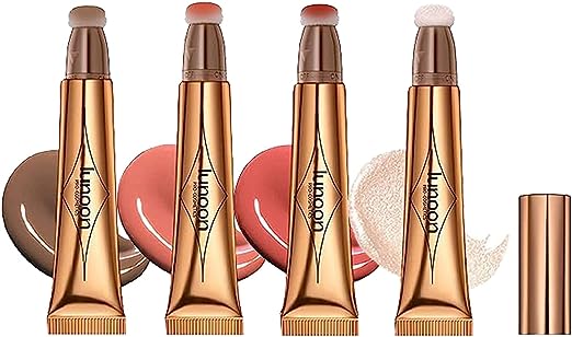 4 Colors Liquid Contour Beauty Wand Set with Cushion Applicator,Highlighter & Blush,