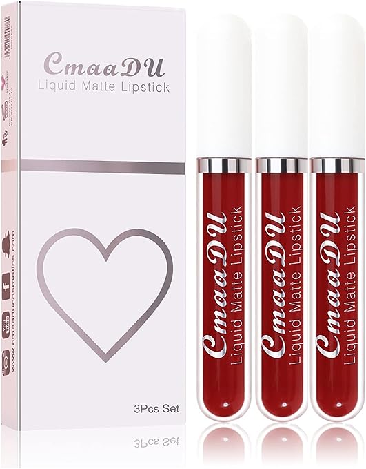3Pcs Matte Liquid Lipstick with Lip Plumper Makeup Set,