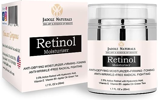 Jadole Naturals Retinol Moisturizer Cream 1.7 Oz 50 ml for Face & Eye Area With Hyaluronic Acid,