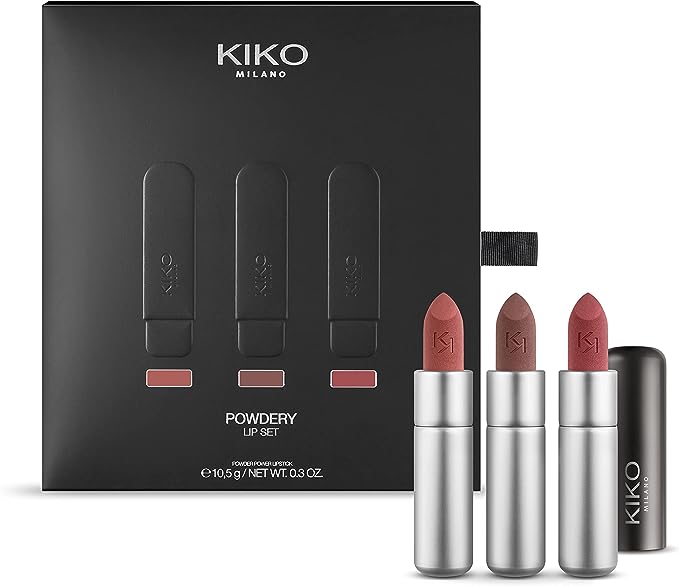 KIKO Milano Powdery Lip Set | Make-Up Set: 3 Powdery Matte-Finish Lipsticks